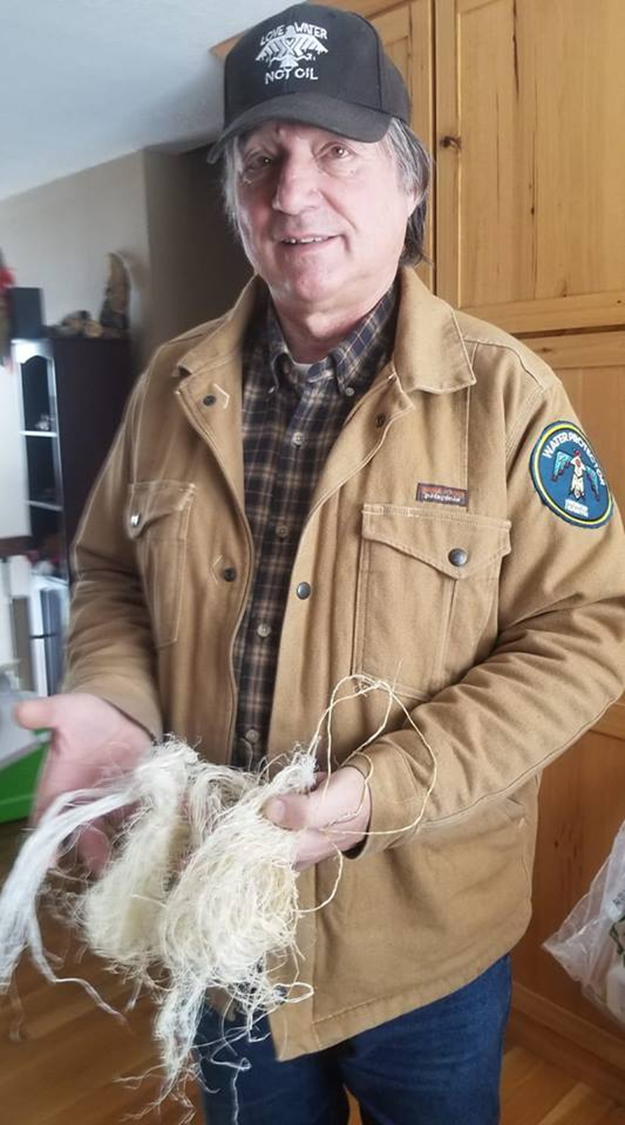 Don Wedll holding processed hemp fiber